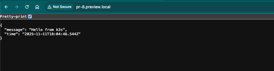 In my previous blog post, I got started with k3s on my Raspberry PI, which mainly involved installation and then eventually deploying a containerized node app directly to the cluster from Docker Hub. I wanted to expand on that a little this week and try my hand at starting a PR preview system using GitHub webhooks. The goal for this week was to use the webhooks to create a k3s namespace, deployment, and service per PR, and post a comment to that pr with the preview URL included.